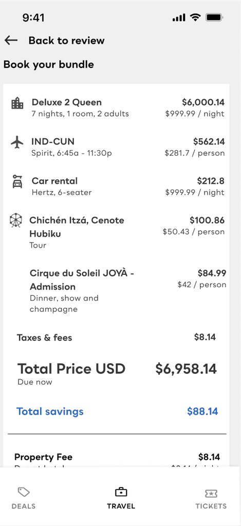 Users expect to see all fees and taxes upfront which helps them make confident decisions.