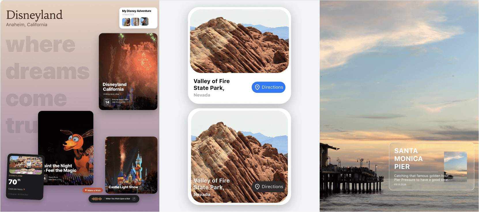 Designed and built a private daily photo journal for slow memory-keeping, with Polaroid-style entries, reflections, and personal spaces