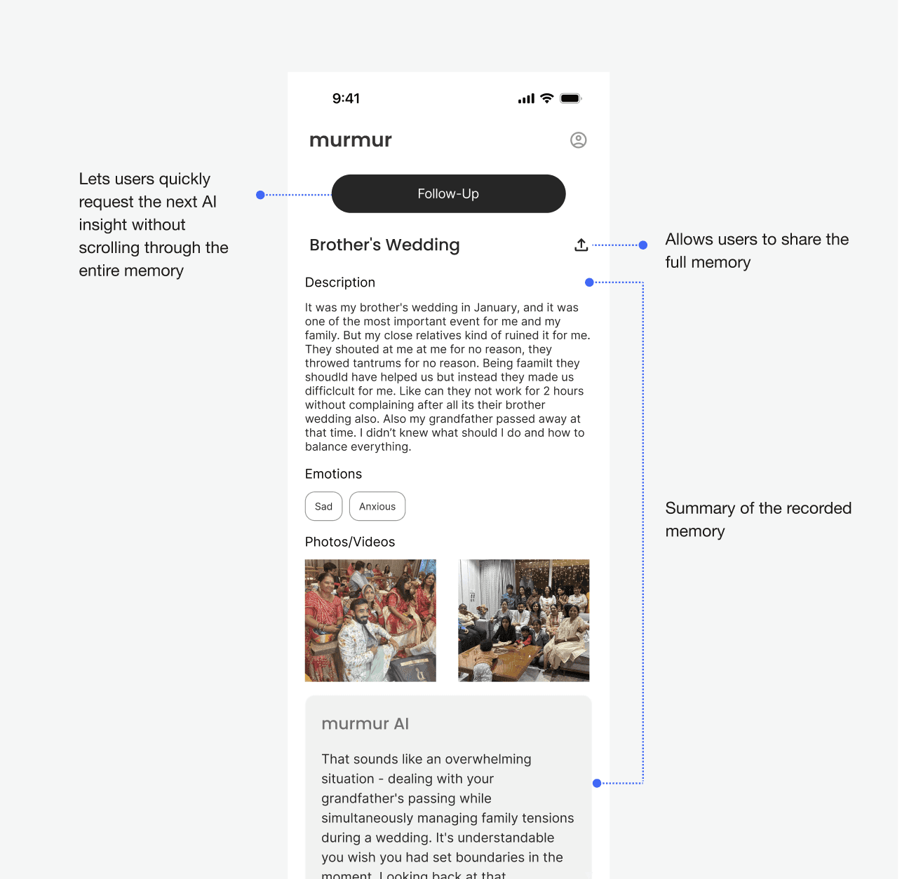 Some users wanted an easier way to revisit follow-ups and past inputs, prompting a refinement in the memory detail page and homepage timeline status cues.